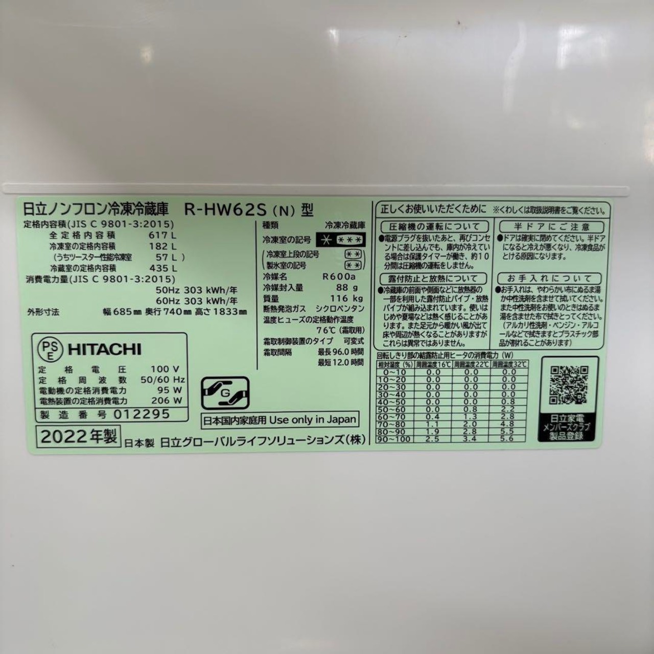 ⭐️HITACHI⭐️ 冷凍冷蔵庫 2022年 617L 自動製氷 大阪近郊配送無料