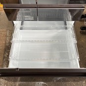 冷蔵庫の中のプラスチックの棚板に少しヒビが入っています。