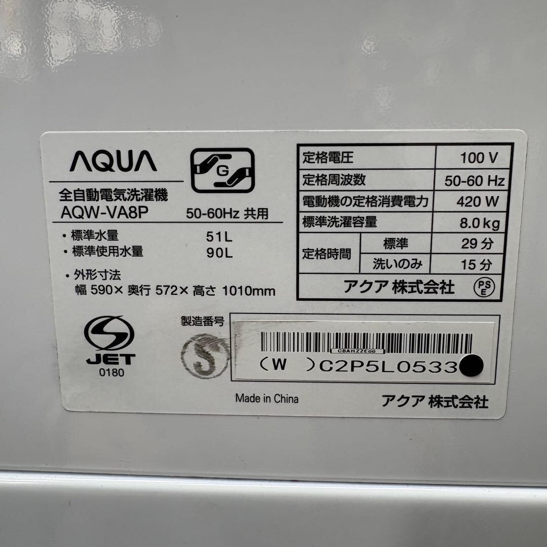 ⭐️AQUA⭐️全自動洗濯機 2023年 8.0kg 大阪市近郊配送無料