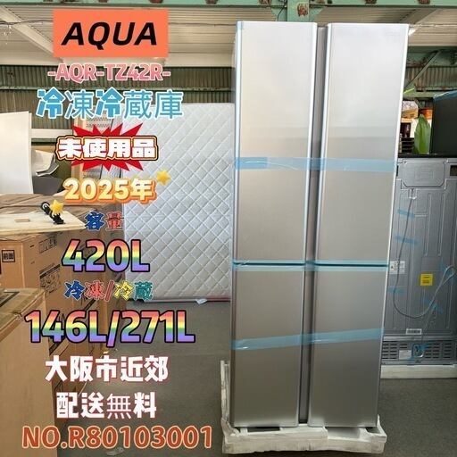 【未使用品】⭐️AQUA⭐️冷凍冷蔵庫 2025年 420L 大阪市近郊配送無料