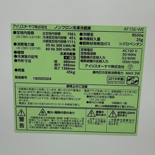 ⭐️IRIS OHYAMA⭐️冷凍冷蔵庫 2019年 156L❗️大阪市近郊配送無料