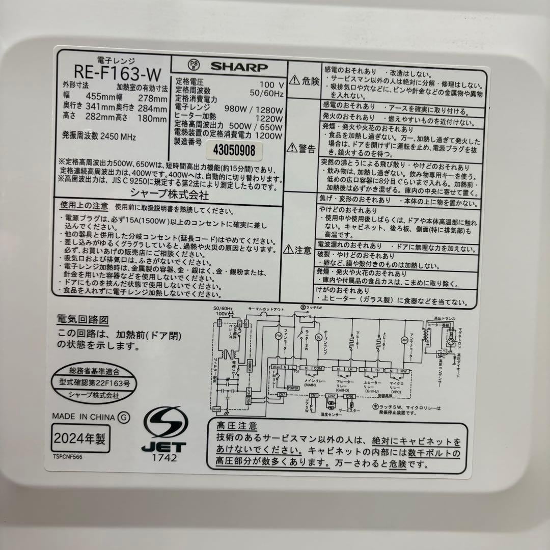 ⭐️SHARP⭐️オーブンレンジ 2024年 大阪市近郊配送無料
