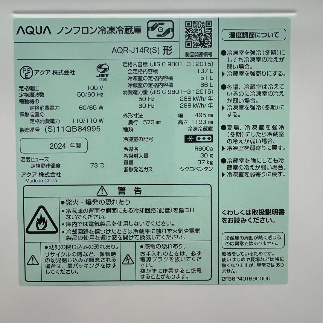 ⭐️AQUA⭐️冷凍冷蔵庫 2024年 137L 大阪市近郊配送無料